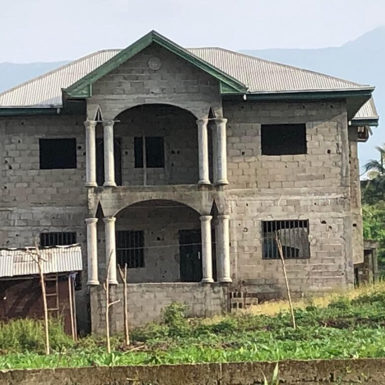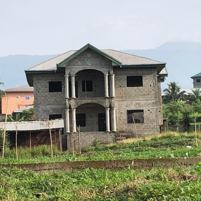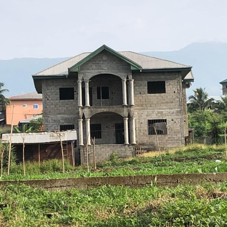 These uncompleted duplex is located in Mile 4 Limbe which consist of a lower floor, a upper floor and a boy quarter. The lower floor has a bedroom, restroom, kitchen, Livingroom and Dinning section while the upper floor has 3 bedrooms, 3 restroom and living room. Also the boys quarter has a room Livingroom and restroom.